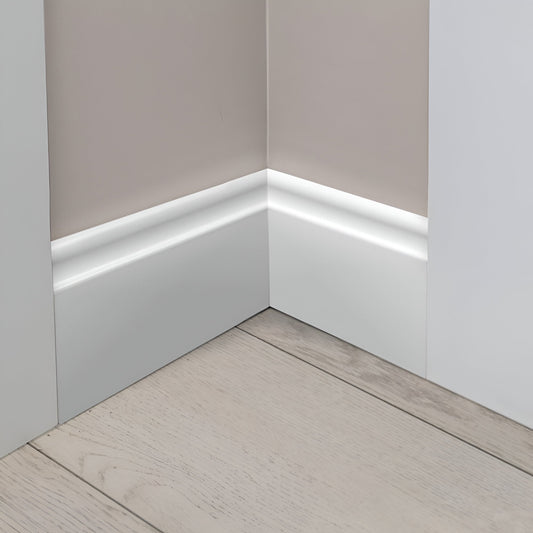 2.4mm White Water-Resistant Contemporary Skirting Board 13mm x 100mm