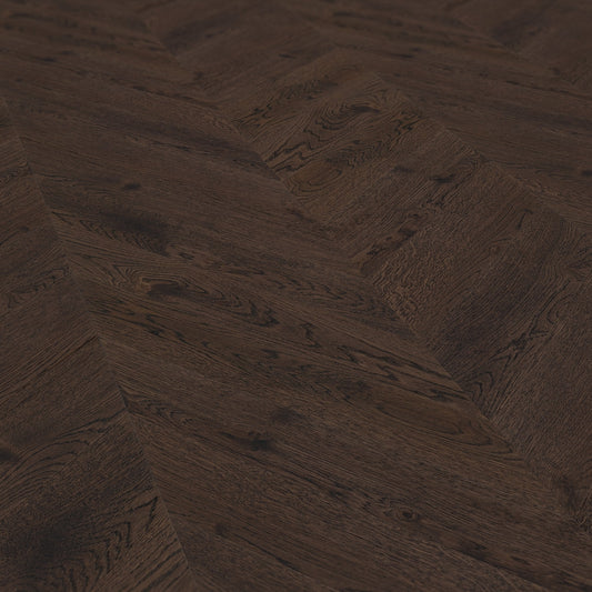 White Oak Smoked - Chevron 15mm Brushed UV oil Engineered Real Wood Flooring (119851)