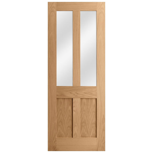 Vendor:Liberty DoorsOak Internal Unfinished Victorian Shaker 2 Panel 2 Light Obscure Glass Made-to-Measure Door (121925)