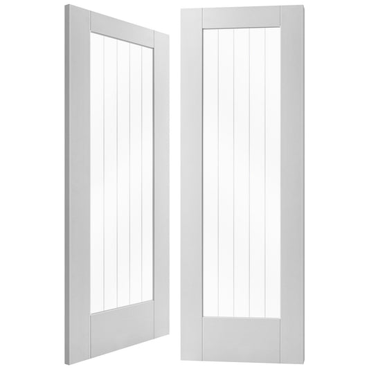 White Internal Primed Cottage 1 Light Obscure Lined Clear Glass Pair Door (85817)