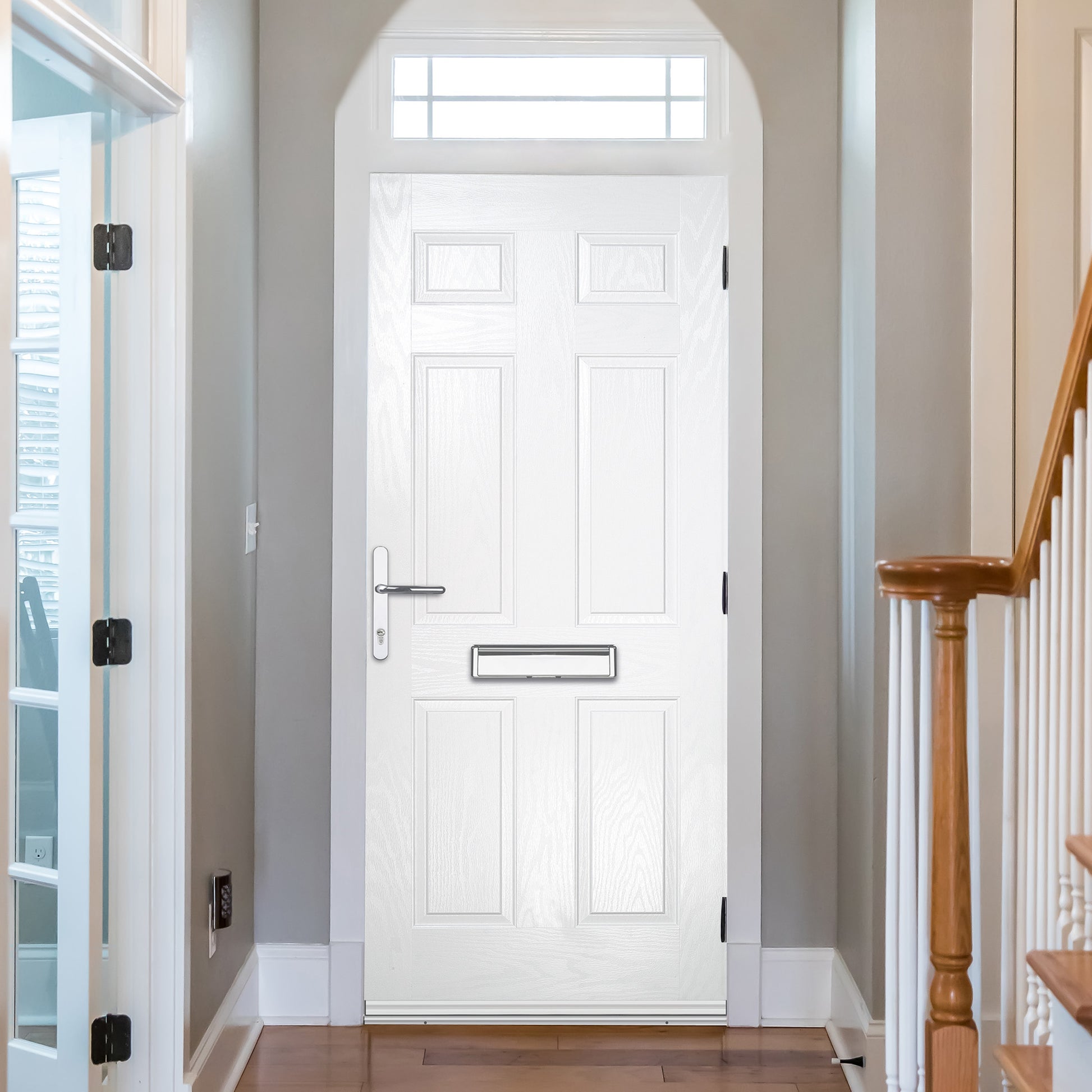 A masterclass in style and efficiency, the Aden White Pre-Hung Composite Front Door Set is a perfect choice for the modern home.
