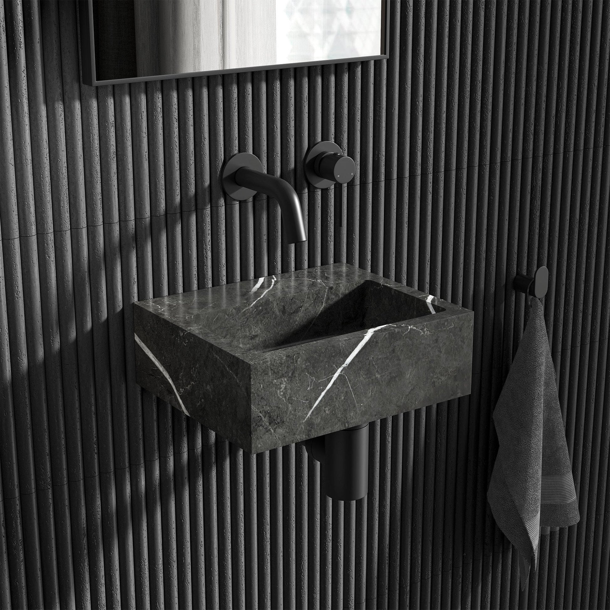 Nosa marble wall hung basin in polished black delivers a compact, trade-ready solution for modern washrooms. Craft Pietra Grey Marble Wall Hung Basin 300mm uses durable marble for long service life, stain resistance, and easy wipe-down maintenance in high-use settings. Wall-hung format supports efficient installation, simplified floor cleaning, and straightforward alignment on standard brackets and fixings. 63mm diameter waste cover included for a clean finish and compatibility with standard wastes and taps. Exclusive trade benefits available to members.